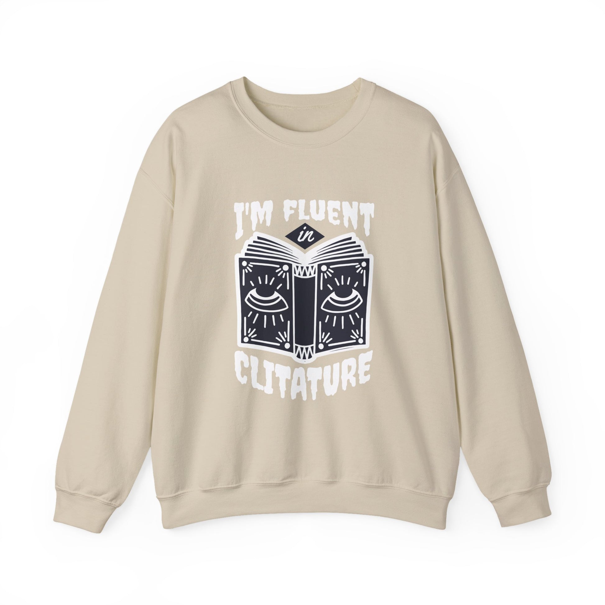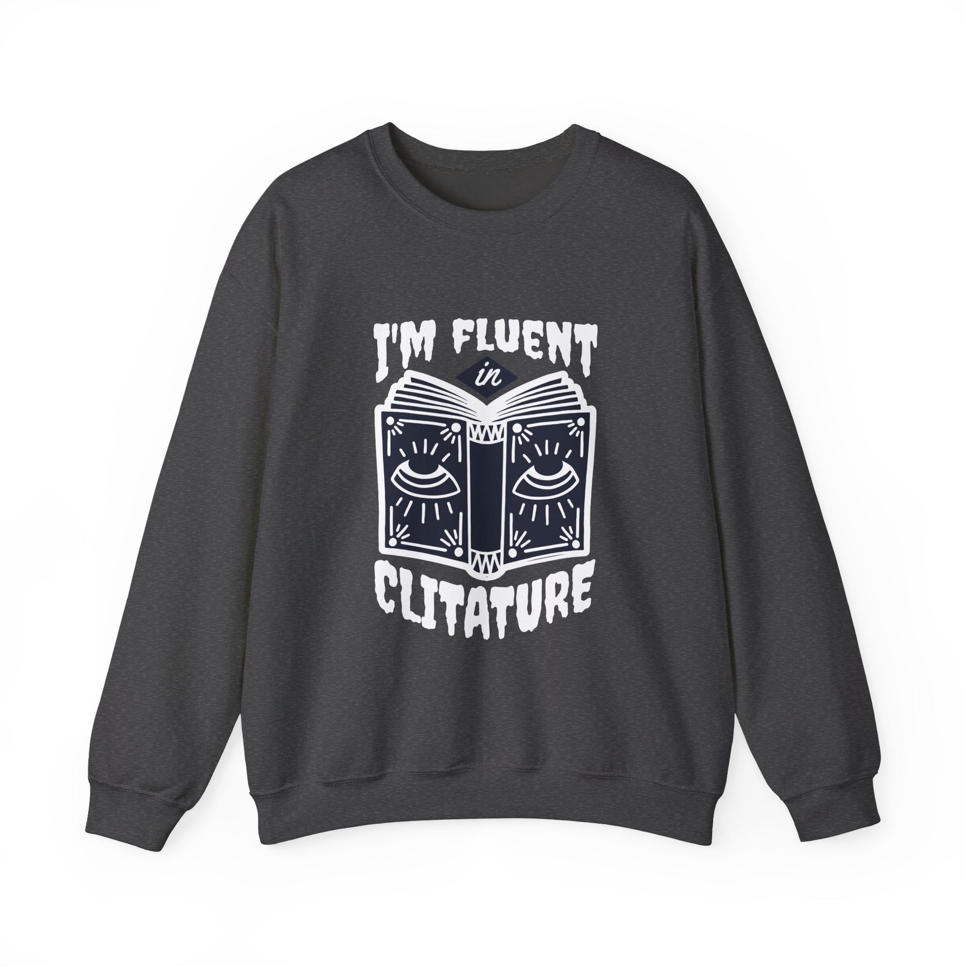 Fluent in Clitature Sweatshirt, Cozy Crew Neck, Unisex Funny Gift, Book Lover Apparel, Literature Lover Clothing, Perfect for Casual Wear